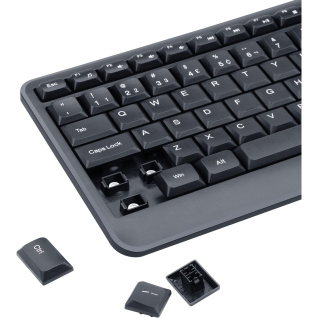Kit com teclado e mouse ideal para uso empresarial, em escritórios e home officeAtalhos multimídia d..