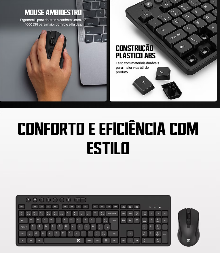 - Kit com teclado e mouse ideal para uso empresarial, em escritórios e home office