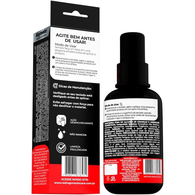Com fórmula pH neutro, o Keymate é seguro para uso frequente e compatível com diferentes tipos de teclado, incluindo mecânicos e membrana.