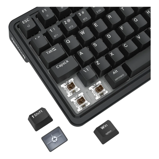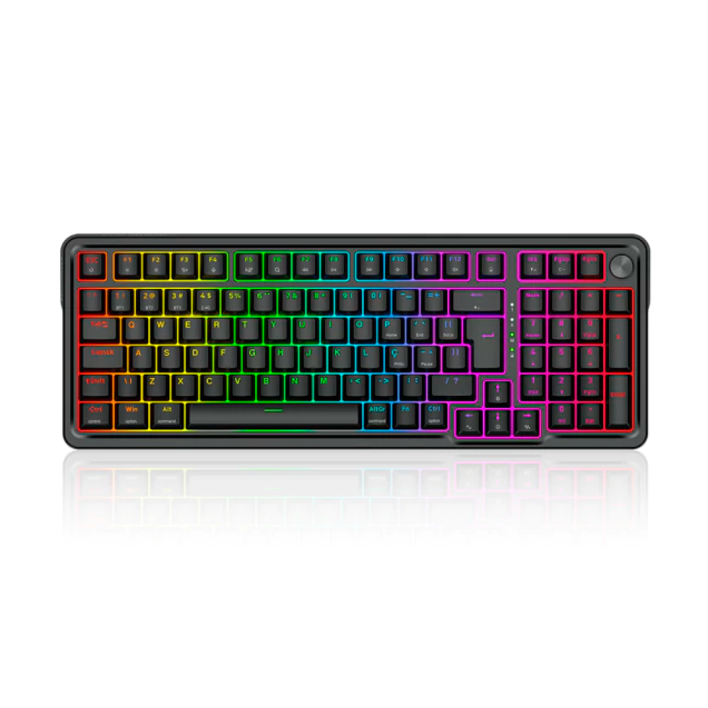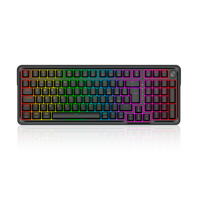 - Keycaps feitas com o método doubleshot injection resultando em legendas duradouras