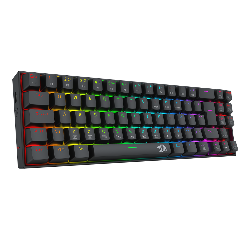 Nome: Teclado Gamer Redragon Deimos RGB Preto 70% Compacto Switch Marrom K599-KNS