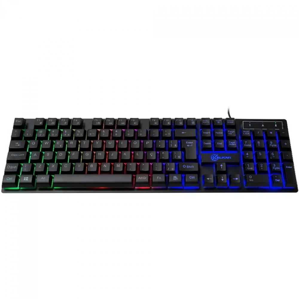 TECLADO MEMBRANA GAMER KALKAN HATI PRETO ABNT2 RAINBOW - KLK00012